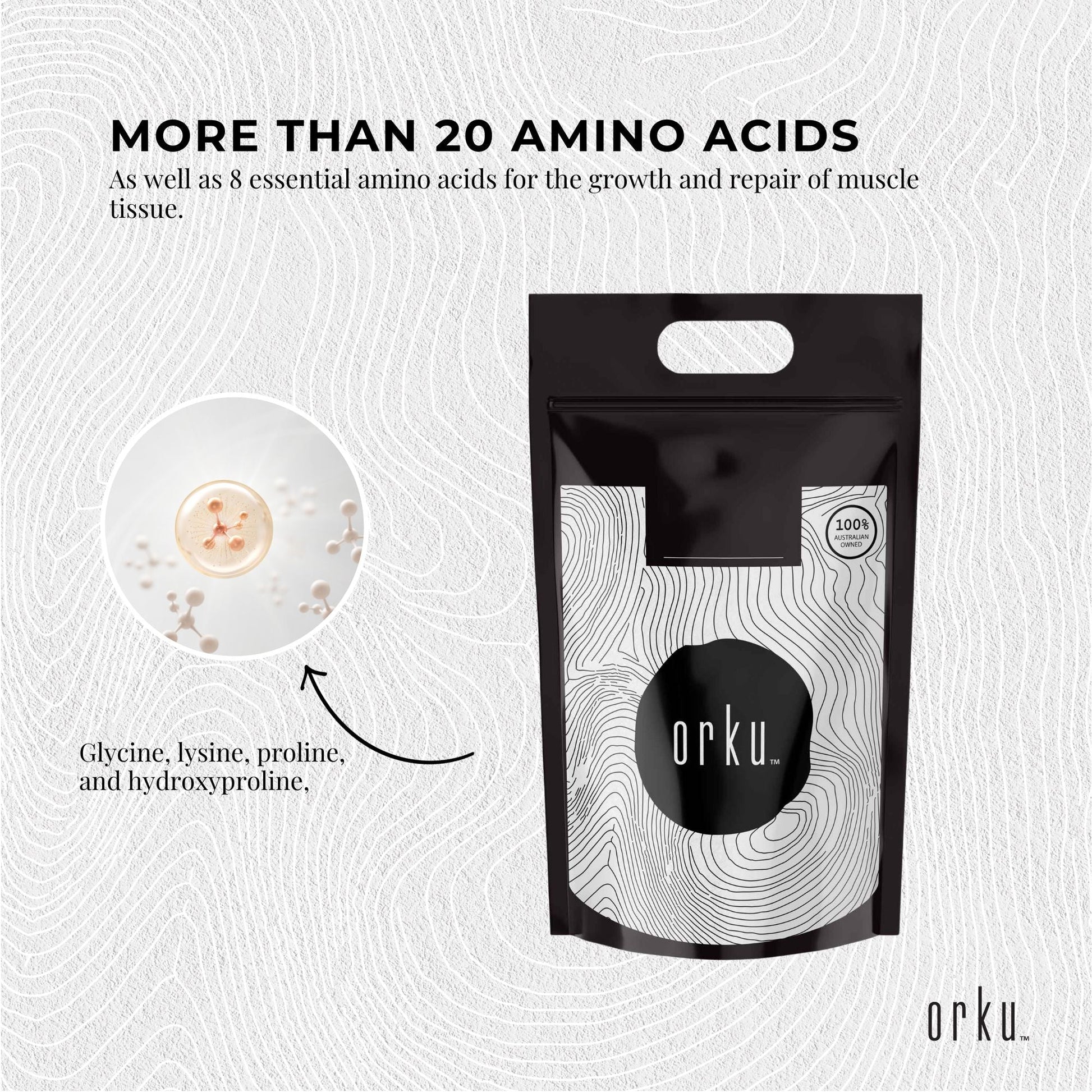 Orku Bovine Collagen Hydrolysate is a bioactive peptide protein that supports the body's own collagen found in bones, joints, skin, hair, and nails.
