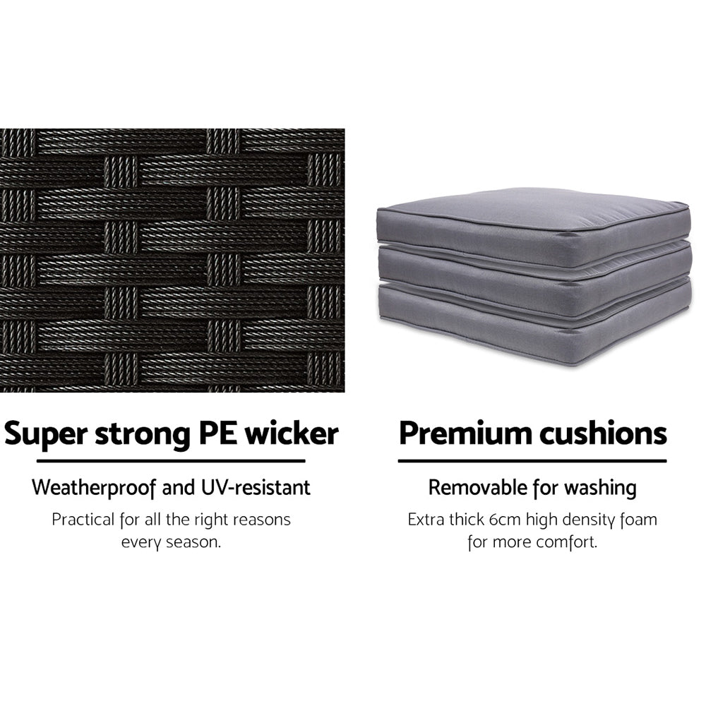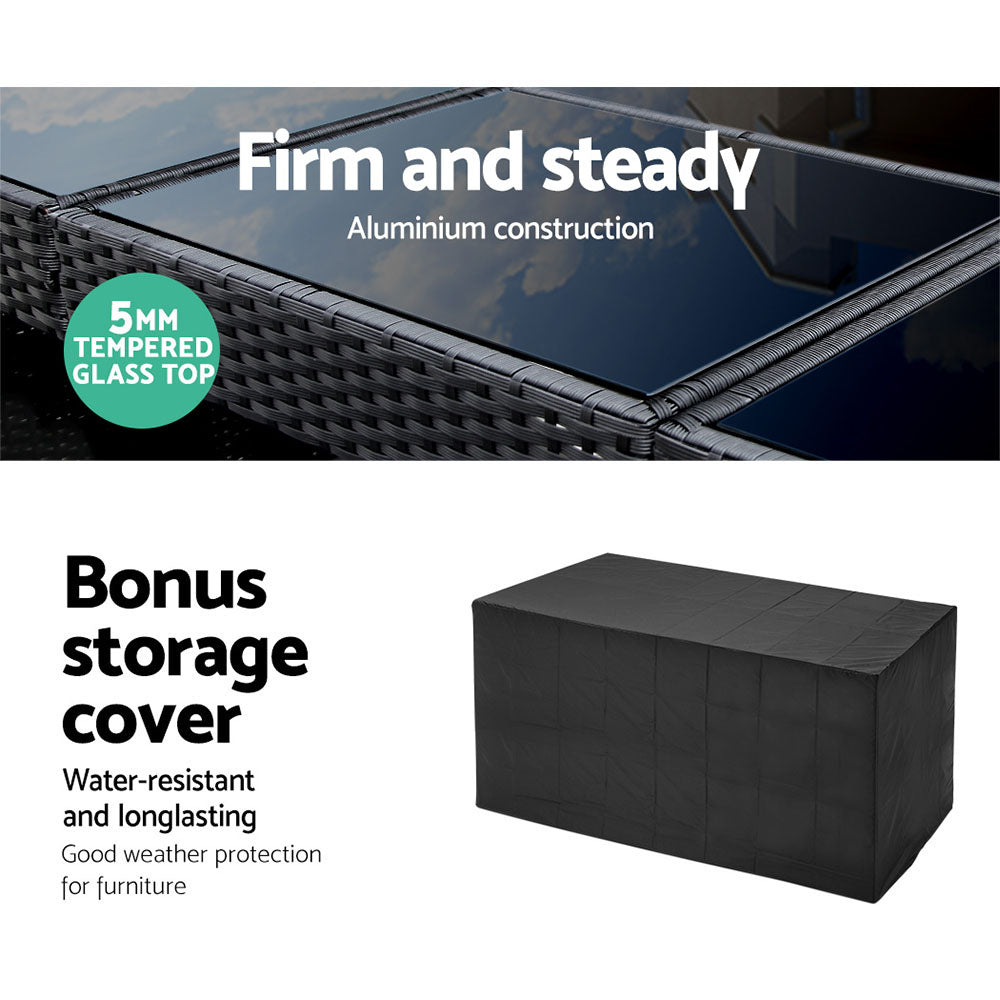 Crafted from weather-resistant PE wicker and powder-coated steel, this bar set is built to last through rain or shine. The 5mm tempered glass tabletop ensures easy cleaning, while removable and washable cushion covers keep things fresh. A bonus waterproof cover is also included to protect the set when not in use.