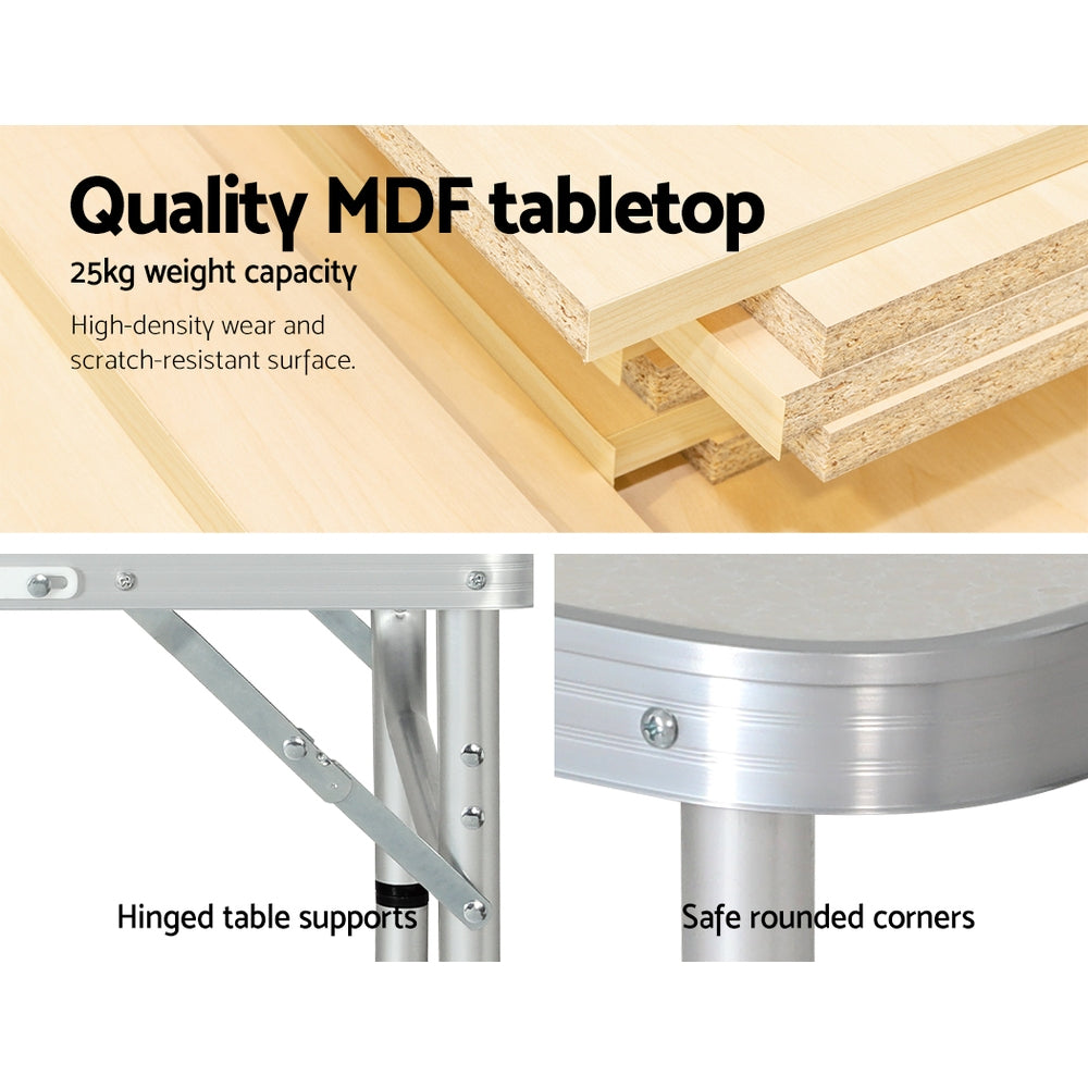 Versatile, durable, and lightweight – the Weisshorn Camping Table is the ideal companion for outdoor adventures, picnics, garden use, or even as an extra table at home. Its strong aluminium frame and rust-resistant MDF tabletop ensure reliable performance in all weather conditions.